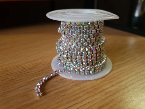 Dieses Strassband hat eine wunderbare Leuchtkraft. Es steht den Strasssteinen der Marke Swarovski in nichts nach. Diese 2mm-Bänder eignen sich sehr gut für feine Arbeiten. Dieser Store ist sehr zu empfehlen.