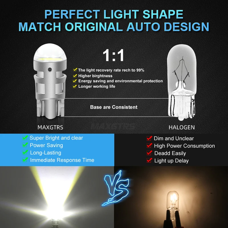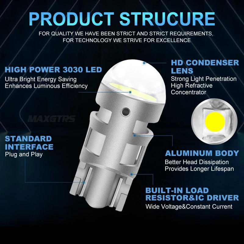 Светодиодные Сменные лампы для автомобильных номерных знаков, парковочные огни, 2 чипа 3030, холодный белый свет, T10, 168, 194, 2825, W5W