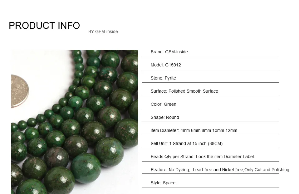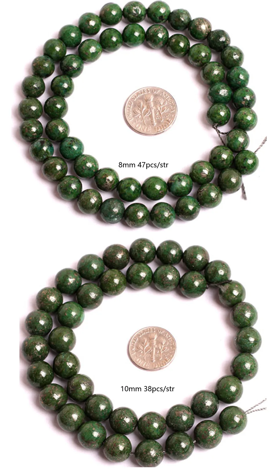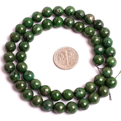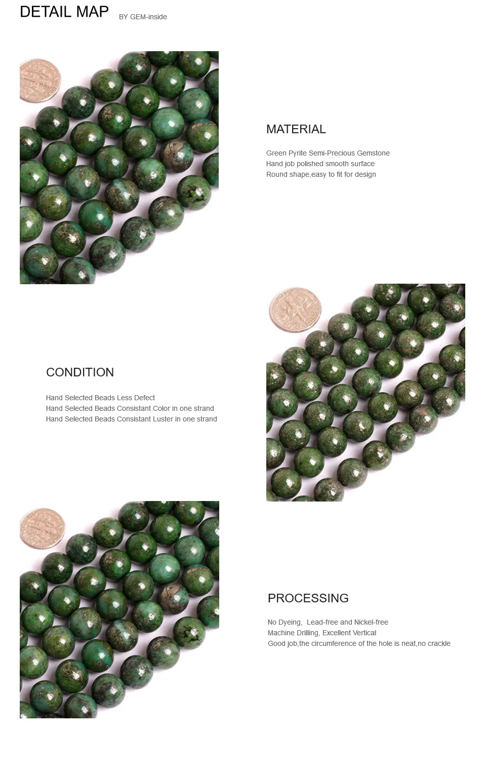 Круглые бусины из зеленого пирита для изготовления ювелирных изделий, нитка 15 дюймов, для браслетов, ожерелий, ювелирных изделий сделай сам, бусины россыпью 4 мм, 6 мм, 8 мм, 10 мм, 12 мм