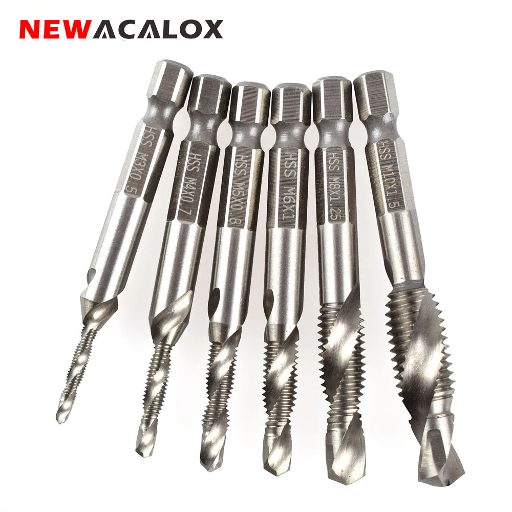Newacalox 14 ''hex HSS высокая Скорость стали нить спиральный винт M3 M4 M5 M6 M8 M10 метрики композитный коснитесь сверло коснитесь 6 шт.компл.