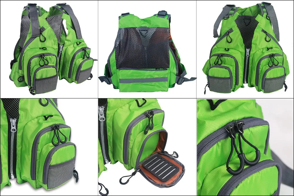 Жилет очень легкий и дышащий, много карманов для использования, молния для улучшения, кольцо для посадки, карман для dell клетка для бутылки воды, идеальный размер для болтается