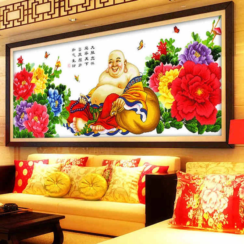 Вышивка QIANZEHUI сделай сам, улыбающаяся вышивка крестиком Maitreya, статуи Будды тату Будды, вышивка крестиком, настенный Декор для дома