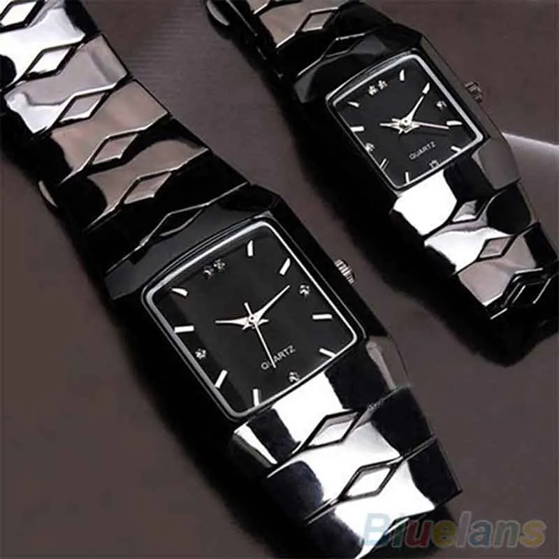 Часы для пары, из нержавеющей стали, черные, мужские, Роскошные, классические, кварцевые наручные часы для женщин, мужчин, новый дизайн 5D7D 6UFT, reloj mujer