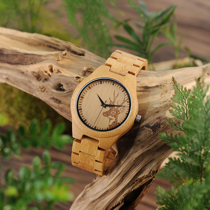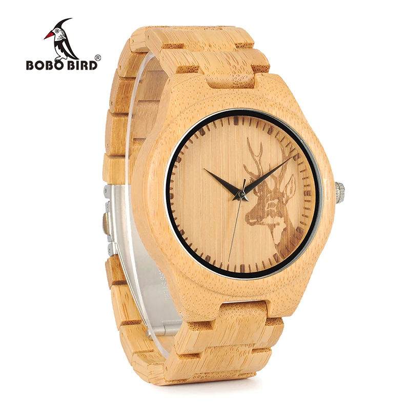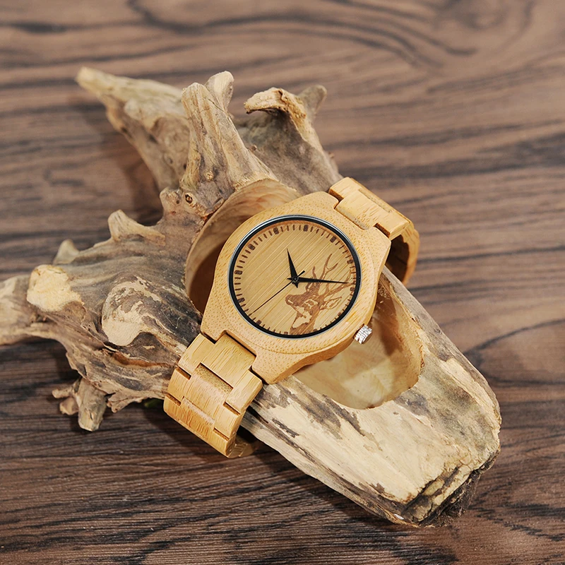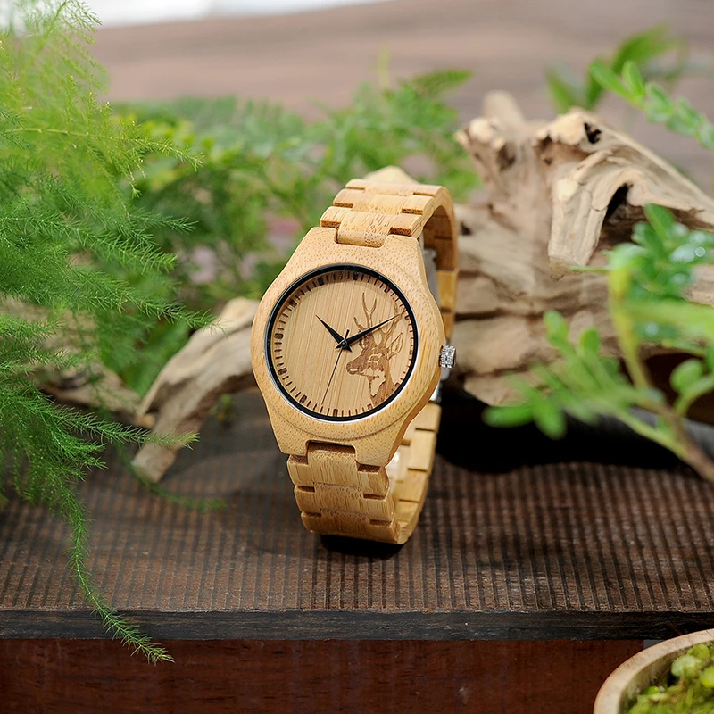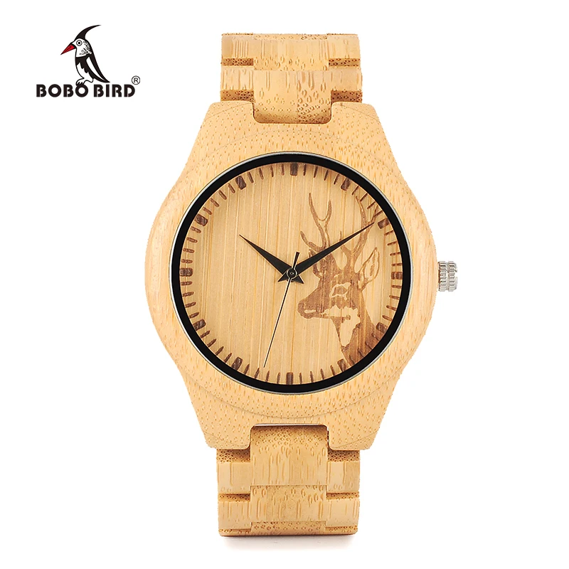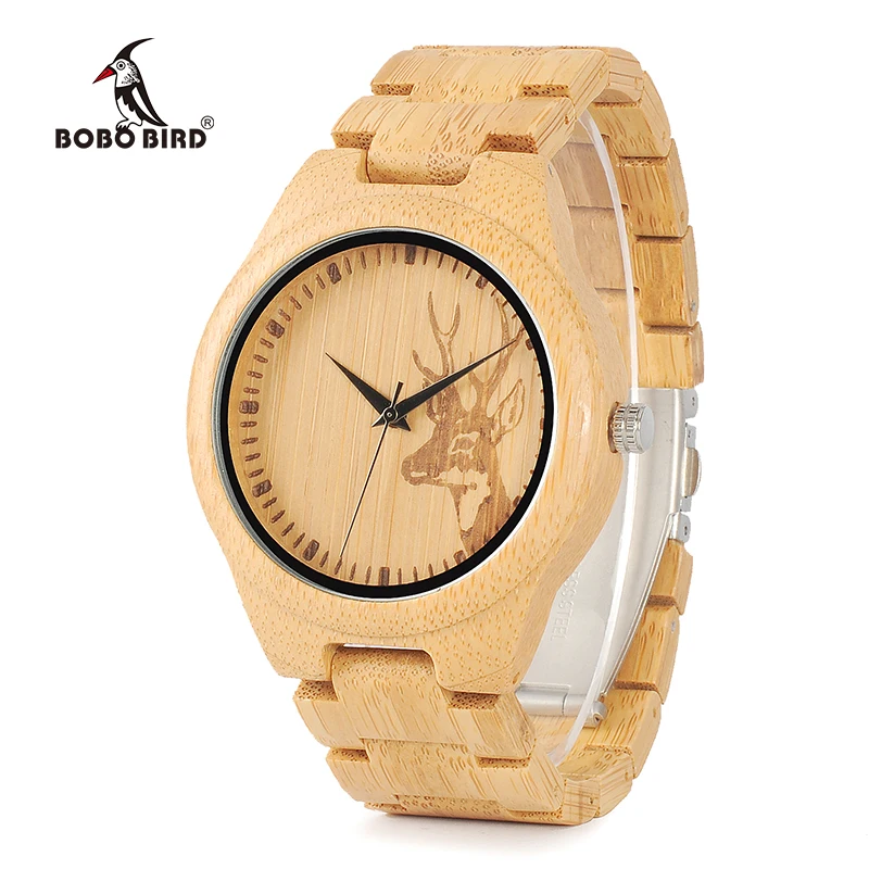 Мужские бамбуковые деревянные часы BOBO BIRD WD28, дизайнерские брендовые кварцевые наручные часы в подарочной коробке с изображением лося, оленя