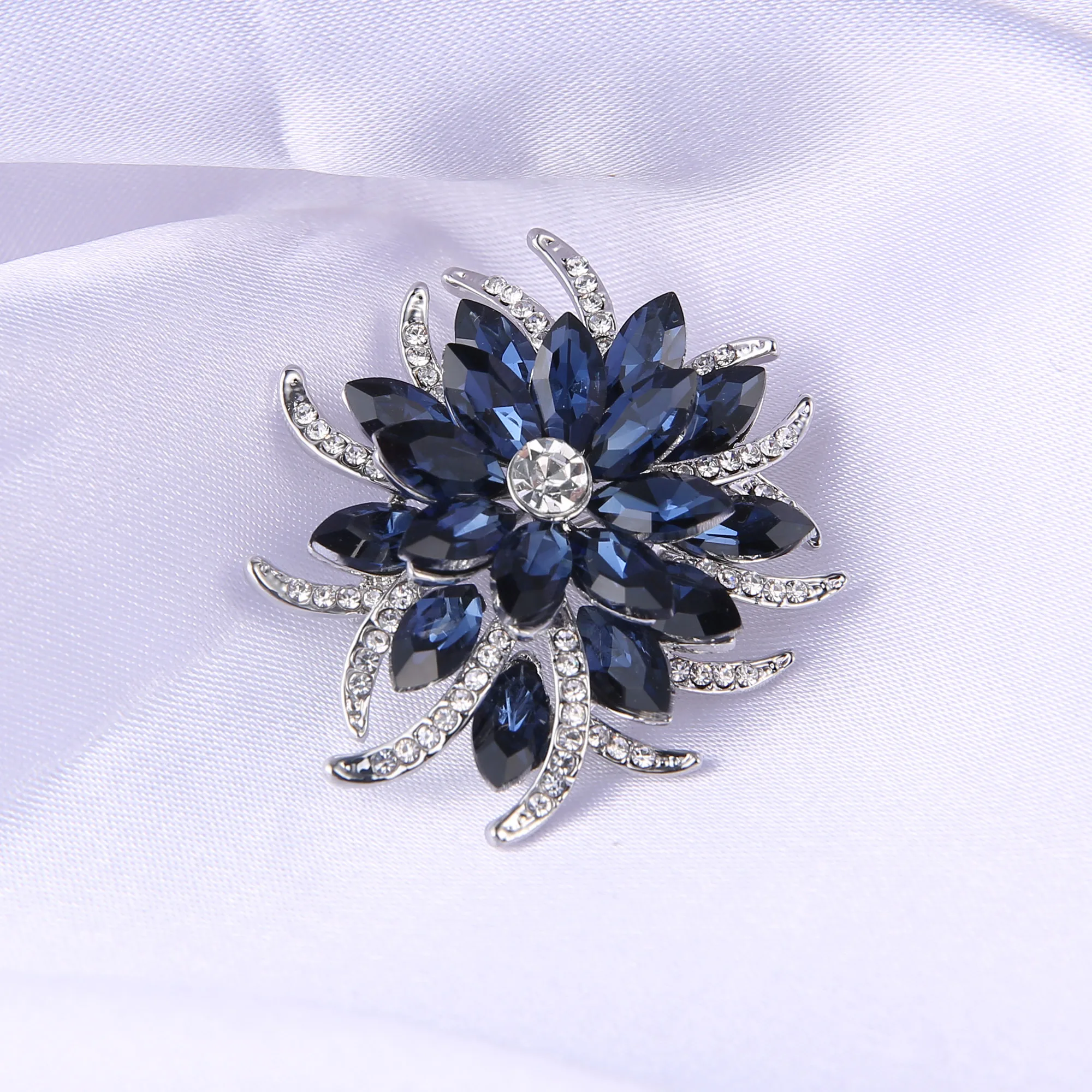 Брошь в форме цветка, с синим кристаллом, в винтажном стиле