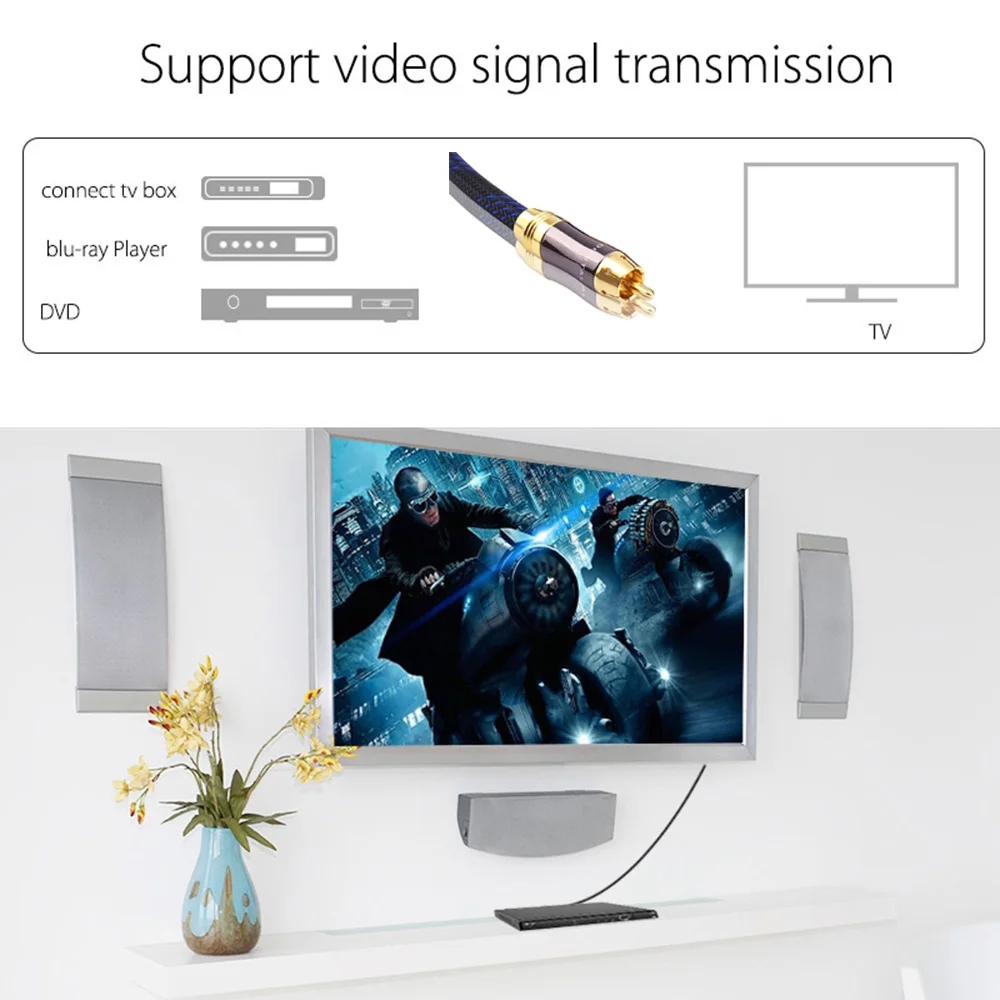 Цифровой коаксиальный аудиовидео кабель Hi-Fi 0,5 м, 1 м, 1,5 м, 2 м, 3 м, 5 м, 1 штекер-1 штекер Rca, Золотой кабель для динамиков, кабель для сабвуфера Hi-Fi