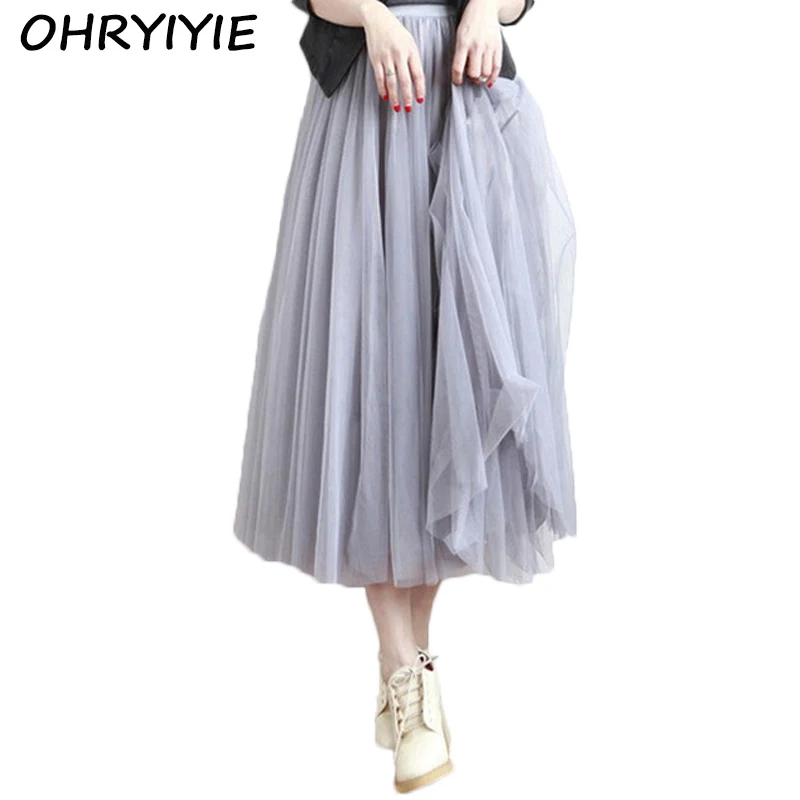 OHRYIYIE Высокая талия Тюлевая юбка для женщин 2021 Для летних вечеринок с эластичной резинкой на талии, длинные юбки для девочек юбка принцессы солнце пушистая юбка-пачка Femme