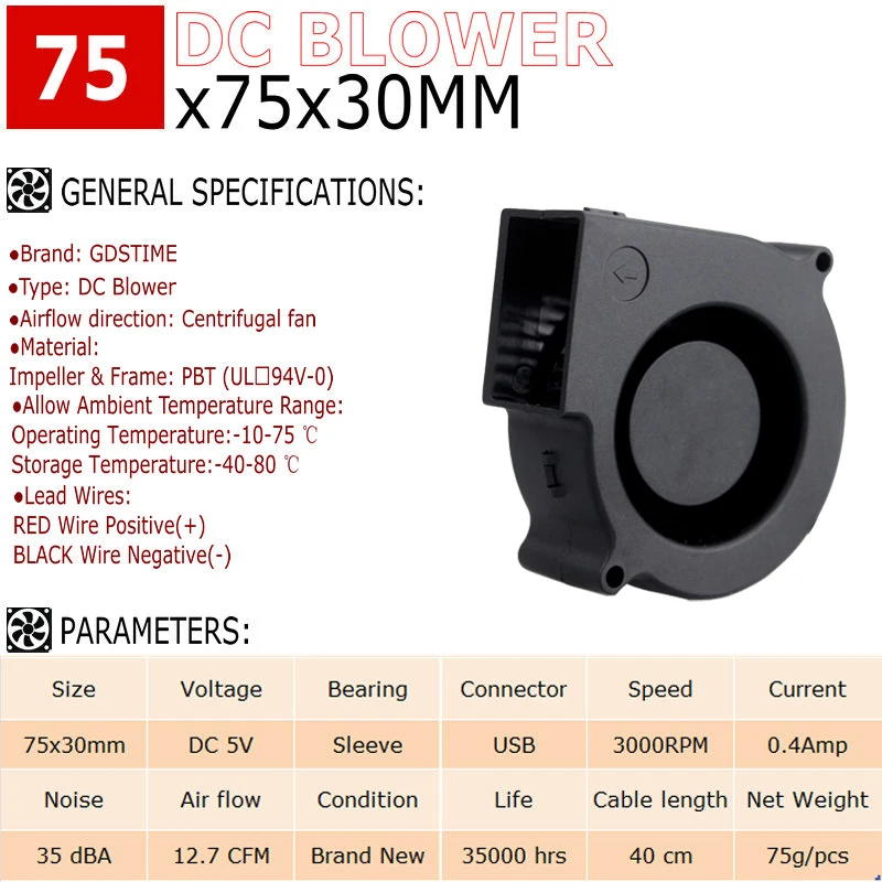 Вентилятор охлаждения воздуха центробежный, 5 в пост. Тока, 7 см, 70 мм, 2 шт.