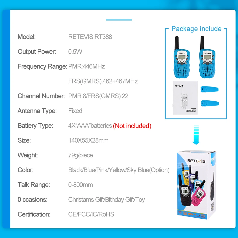 рация детская Retevis RT388 мини рация для детей 2 штуки детские рации подарки на день рождения детям праздничные подарки мальчики девочки школа пмр 446 100-800м