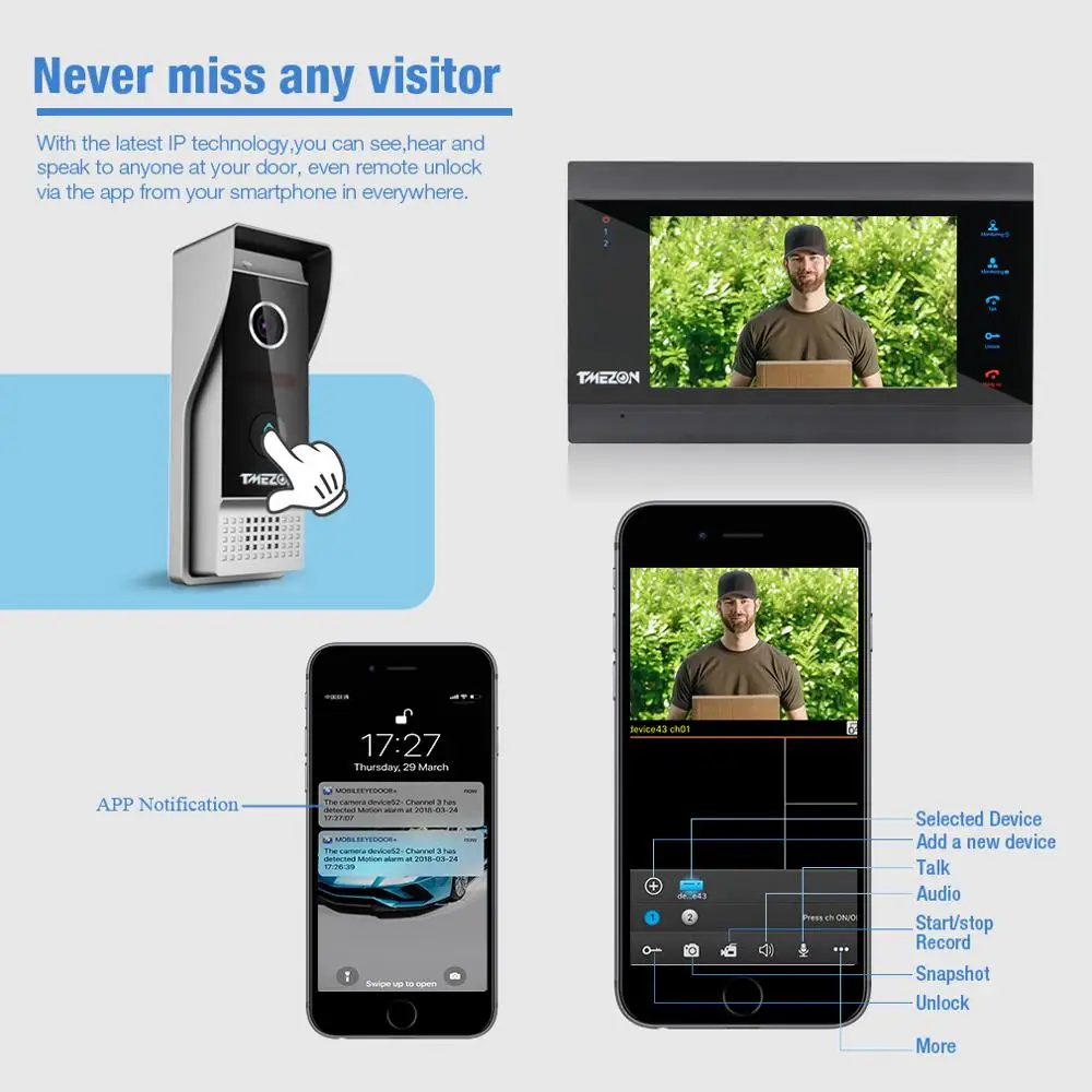 Проводной дверной звонок TMEZON, уличный видеоблок 1200TVL (необходимо работать с 7-дюймовым монитором внутренней связи Tmezon IP, не может работать в одиночку)