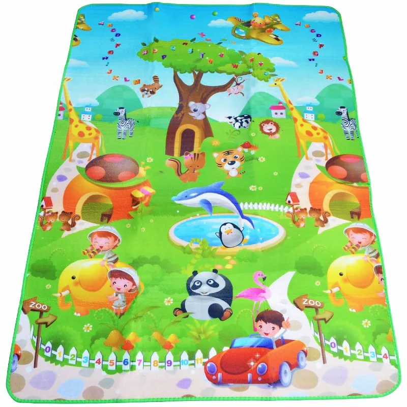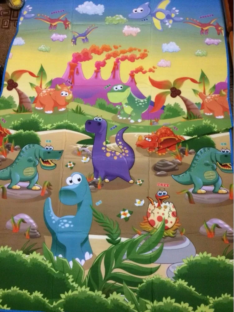 Детский игровой коврик 180*120*0,5 см, двухсторонний динозавр + автомобиль с животными, Детский напольный ковер, для ползания, детский игровой коврик, Спортивная подушка