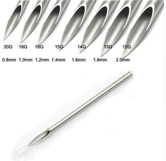 100 шт., одноразовые иглы для пирсинга носа и ушей, 12 г, 14 г, 16 ...