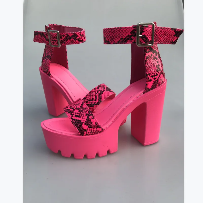 Женские туфли-лодочки на высоком каблуке, Босоножки с открытым носком, летняя обувь большого размера 9 на толстом каблуке, 2021