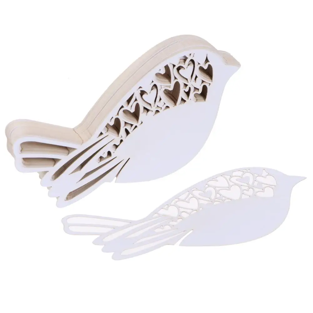 50 шт., лазерная резка, цвета слоновой кости, любовь, птица, свадебные принадлежности, держатель для карточка с именем и местом, свадьба, вечеринка, декоративный бокал для вина