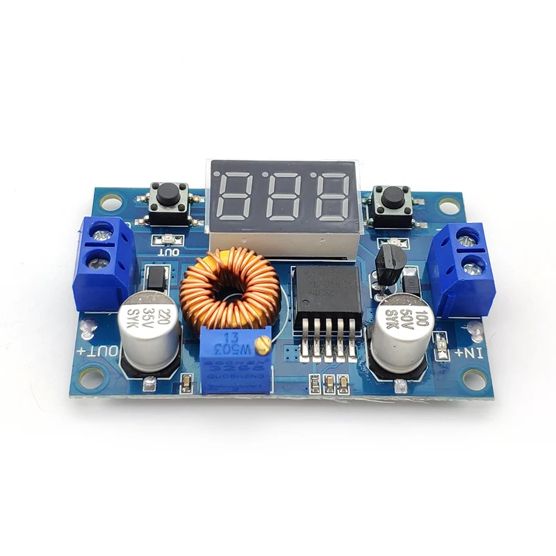 Этот продукт представляет собой ШИМ-понижающий модуль постоянного/постоянного тока с фиксированной частотой 180 кГц, способный управлять нагрузкой на 5 А с высокой эффективностью, низкой пульсацией и отличной регулировкой линии и нагрузки. Модуль с измерителем напряжения для отображения входного и выходного напряжения, И напряжение можно исправить с помощью кнопки для повышения точности вольтметра.