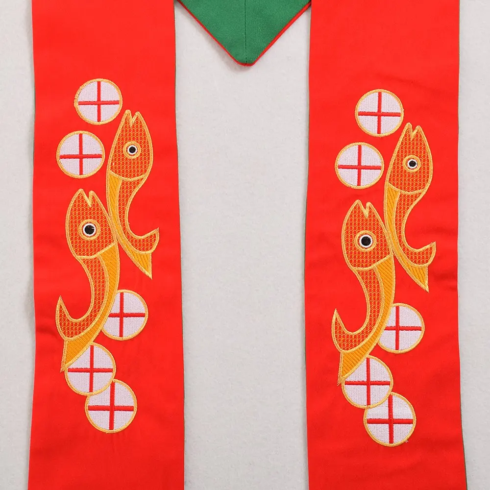 Пасторальная искусственная кожа с вышивкой в виде рыбы красного и зеленого цвета
