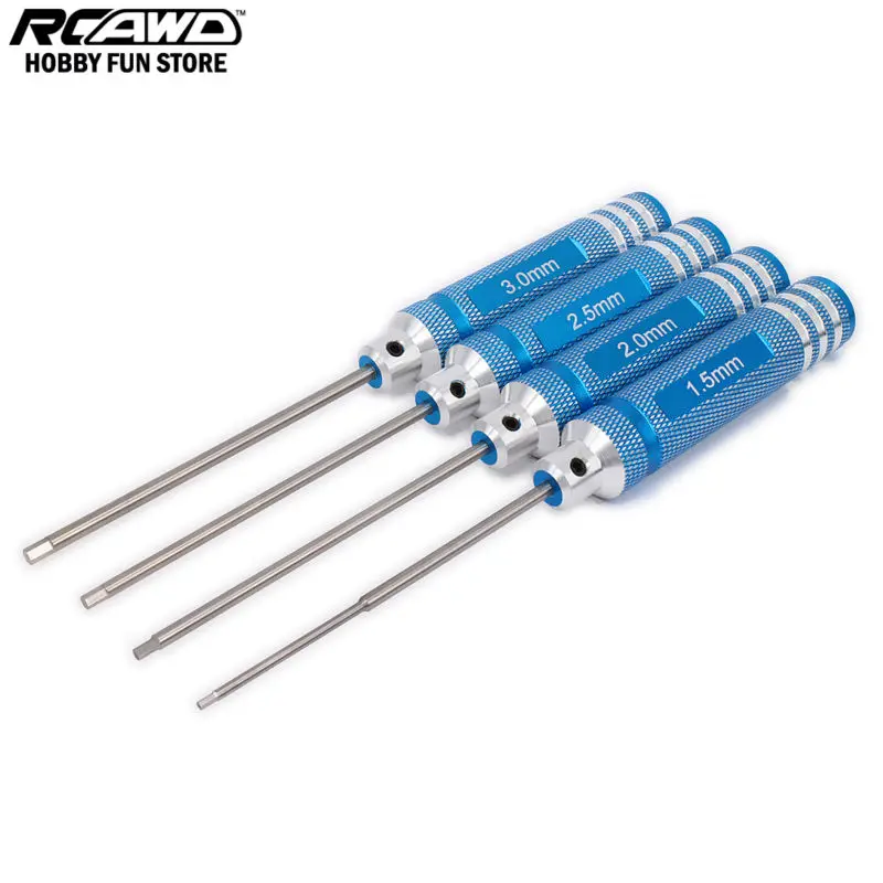 Набор отверток RCAWD с шестигранной рукояткой, Набор отверток для хобби, инструмент для дистанционного управления, 1,5, 2,0, 2,5, 3,0 мм, алюминиевый сплав для радиоуправляемого ключа, модель автомобиля Heli