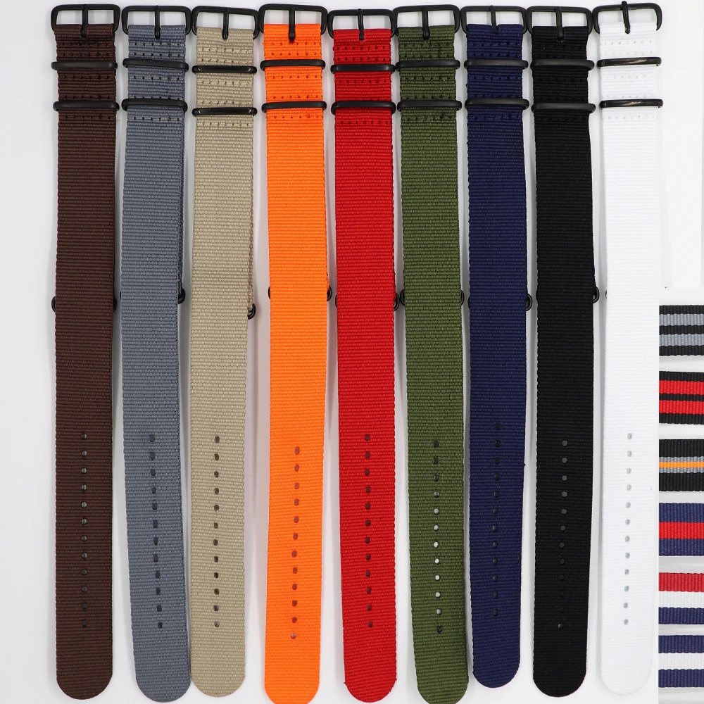 Ремешок с пряжкой Nato ZULU для наручных часов мужскойженский, однотонный оранжевый браслет с PVD-пряжкой, чёрный, в полоску, 20 мм 22 мм 24 мм