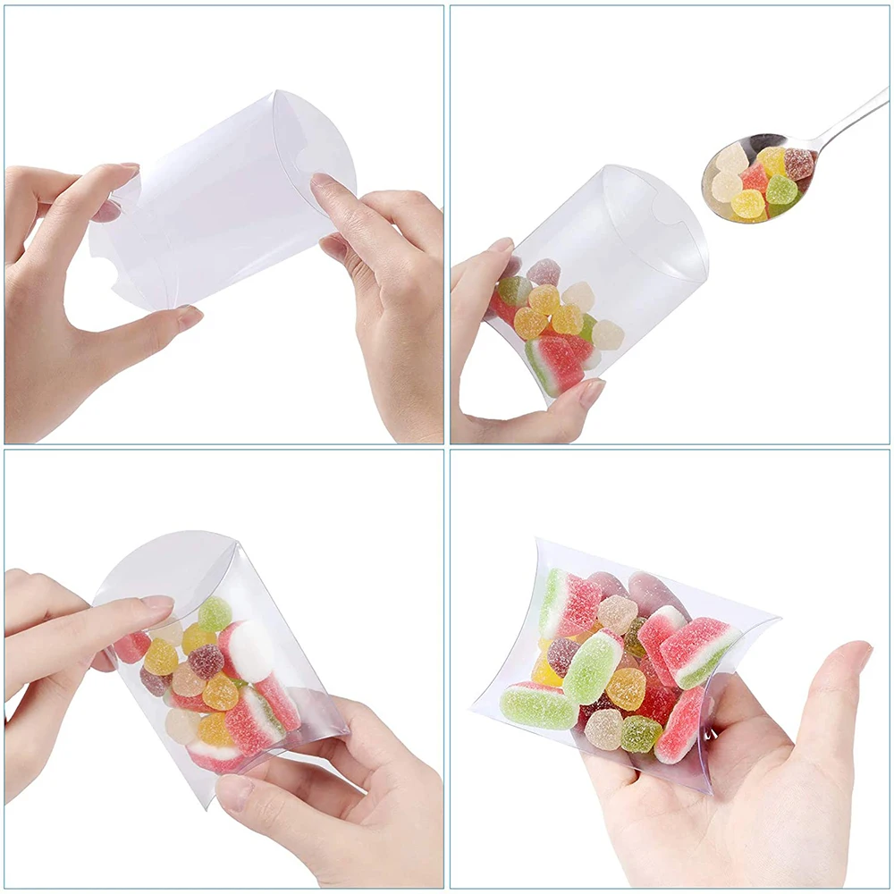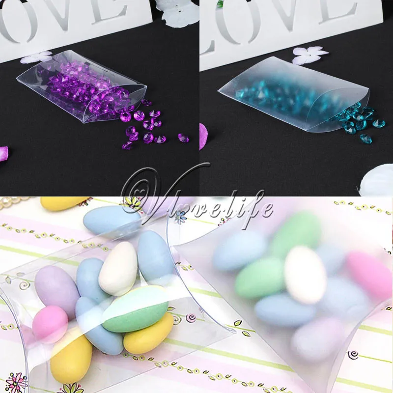 100 шт. коробка для конфет в форме подушки, Свадебная подарочная коробка, упаковочная коробка для свадебной вечеринки, декоративная матоваяпрозрачная Рождественская коробка из ПВХ