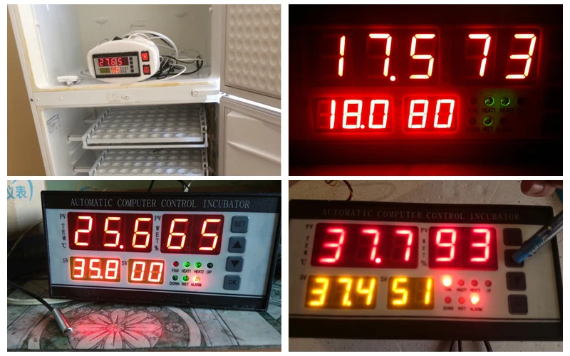 2. Установите температуру и влажность, измените количество дней штриховки:Нажмите кнопку SET, нажмите «+/-», чтобы выбрать желаемую температуру, установите влажность и дни штриховки в той же операции (повторяется дважды), И, наконец, нажмите на настройку для выхода из настройки. (Примечание: заводская настройка составляет 37,8 °C, вы можете установить 37,6 °C в соответствии с вышеуказанным методом. После установки дней штриховки машина перезагружается.)