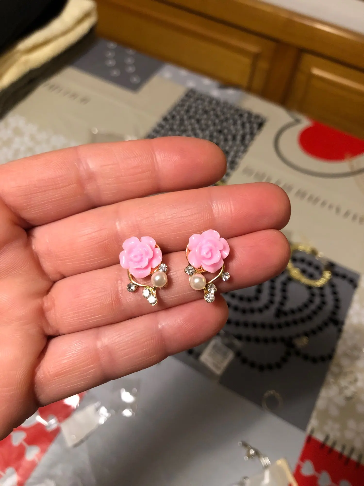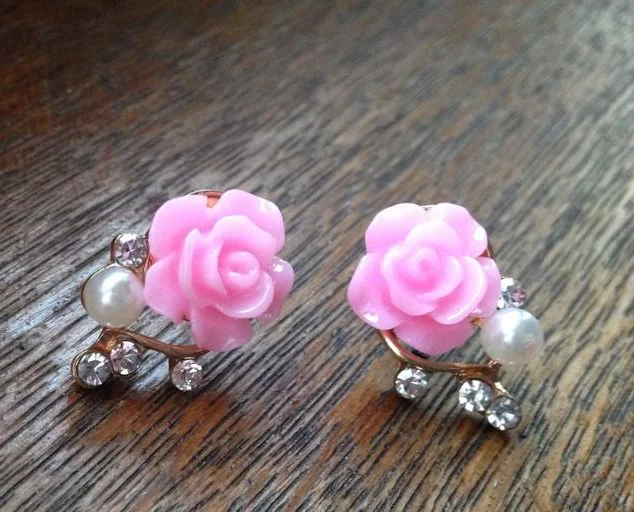 Корейские модные ювелирные изделия большие серьги новый стиль корейские женские Ol Розовые розы Имитация жемчуга кристалл серьги оптом