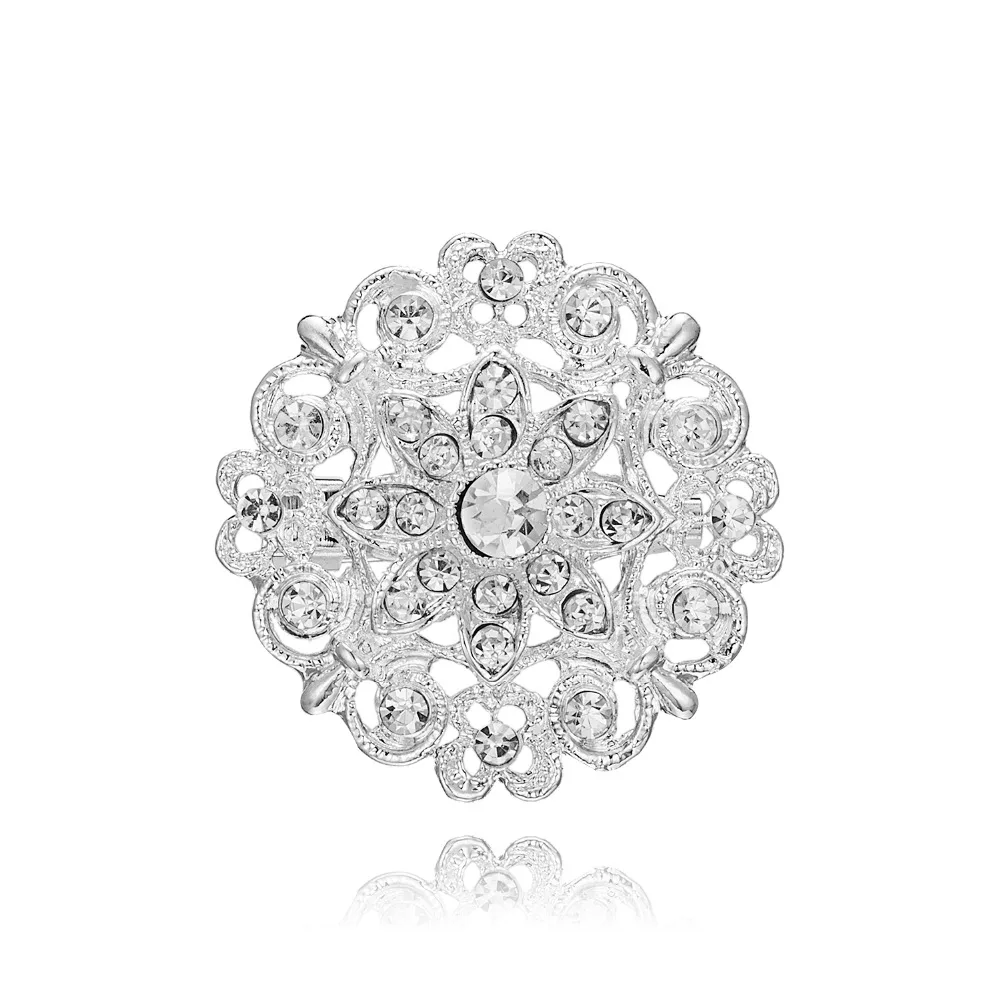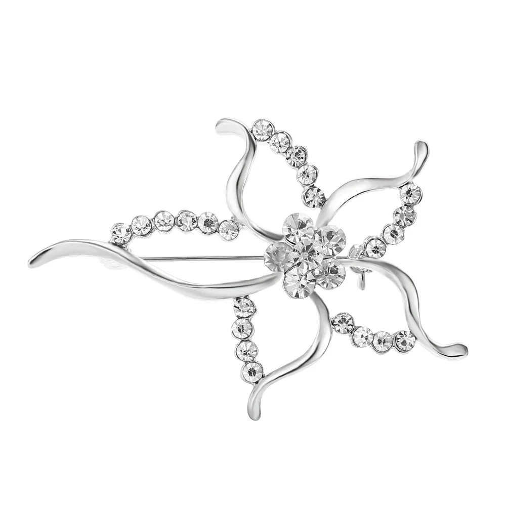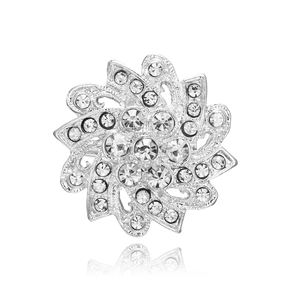 Брошь женская в форме цветка, с кристаллами, темно-синего цвета