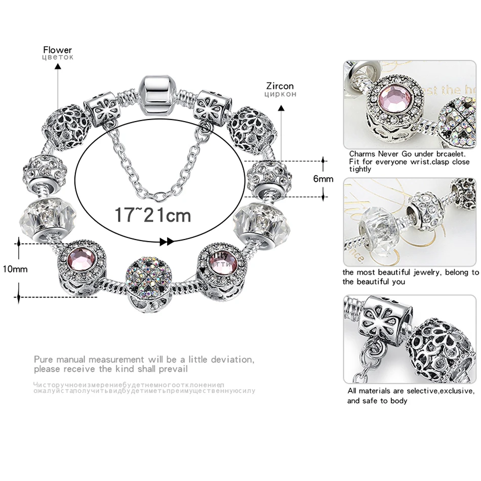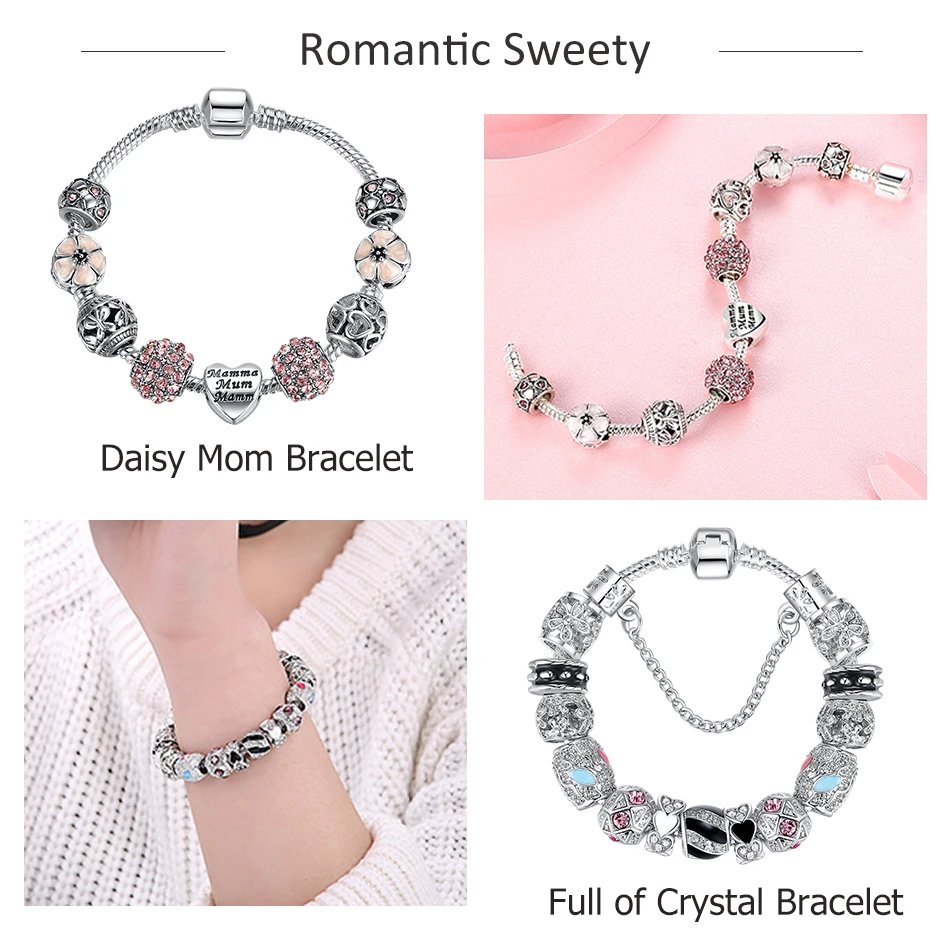 Оригинал, серебро 925 пробы, кристал, клевер с четырьмя листами, браслет с чистым муранским стеклом, бусы, очаровательный браслет, для женщин, сделай сам, ювелирное изделие