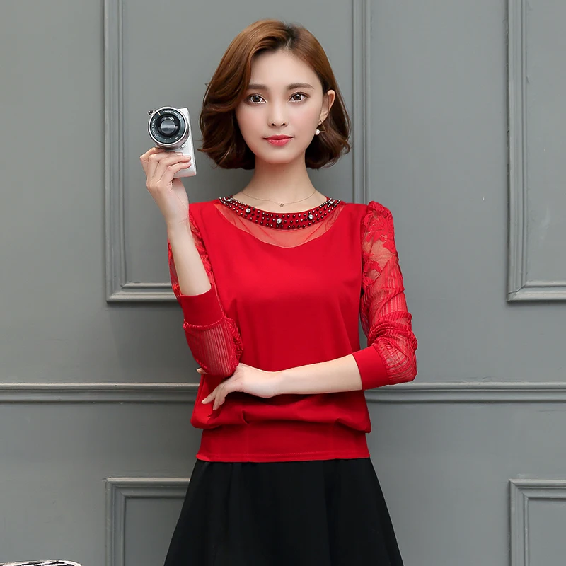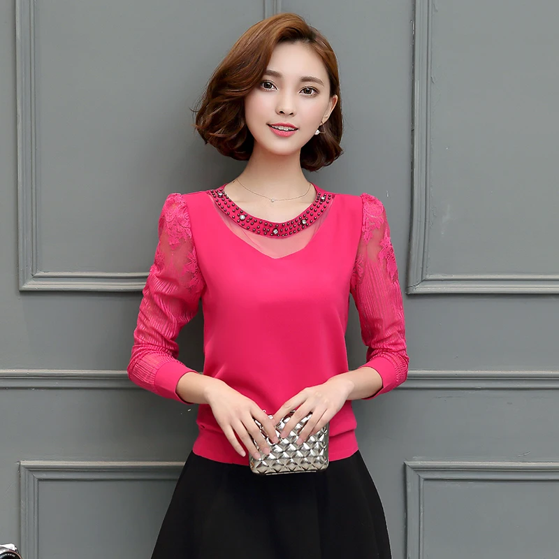 Женские кружевные блузки, весна-осень, рубашки с круглым вырезом и ...