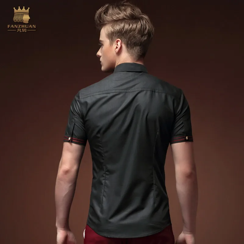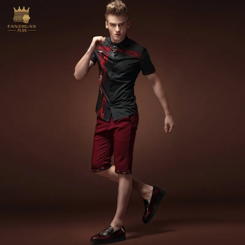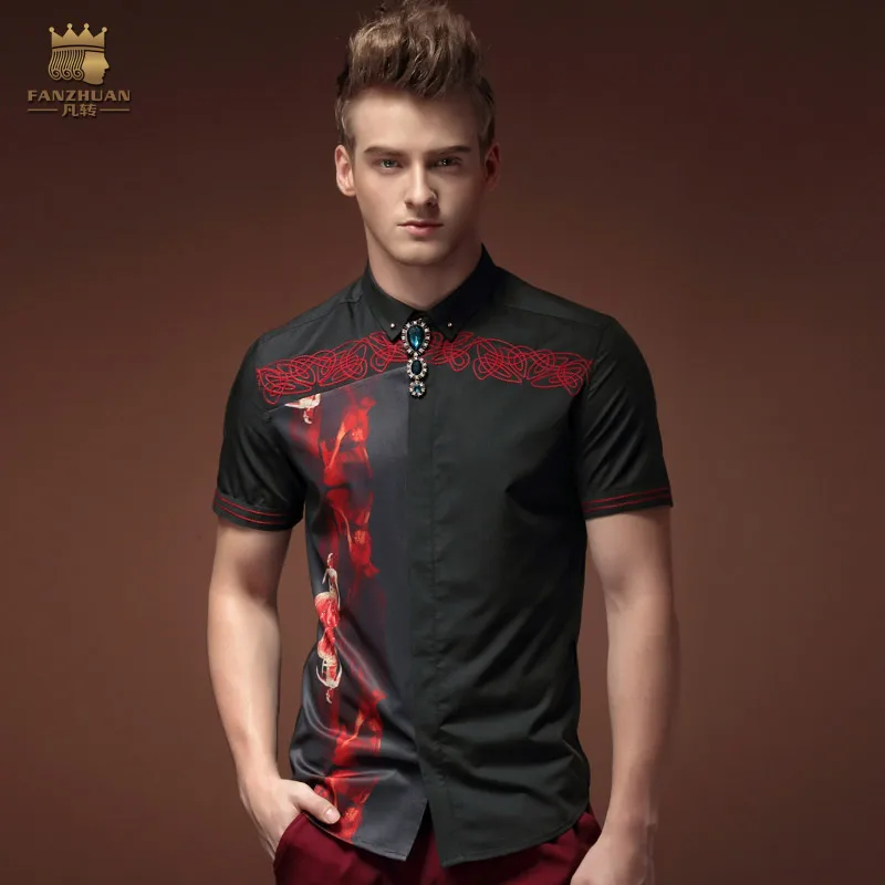 Рубашка fanzhuan мужская с коротким рукавом, модная повседневная с черным цветочным принтом, воротник, индивидуальная одежда, лето 15309