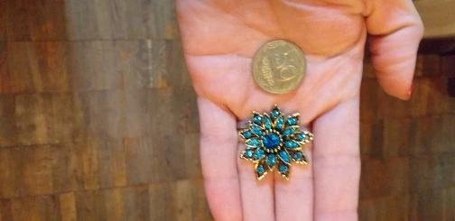 Брошь красивая, но оооочень маленькая, крошечная просто!!! Я люблю броши размером покрупнее, тк сама не совсем маленькая девочка (улыбаюсь)... Но брошь красивая, винтажная-будет подружкам на подарок. Рекомендую к покупке тем, кто любит красивые вещи...