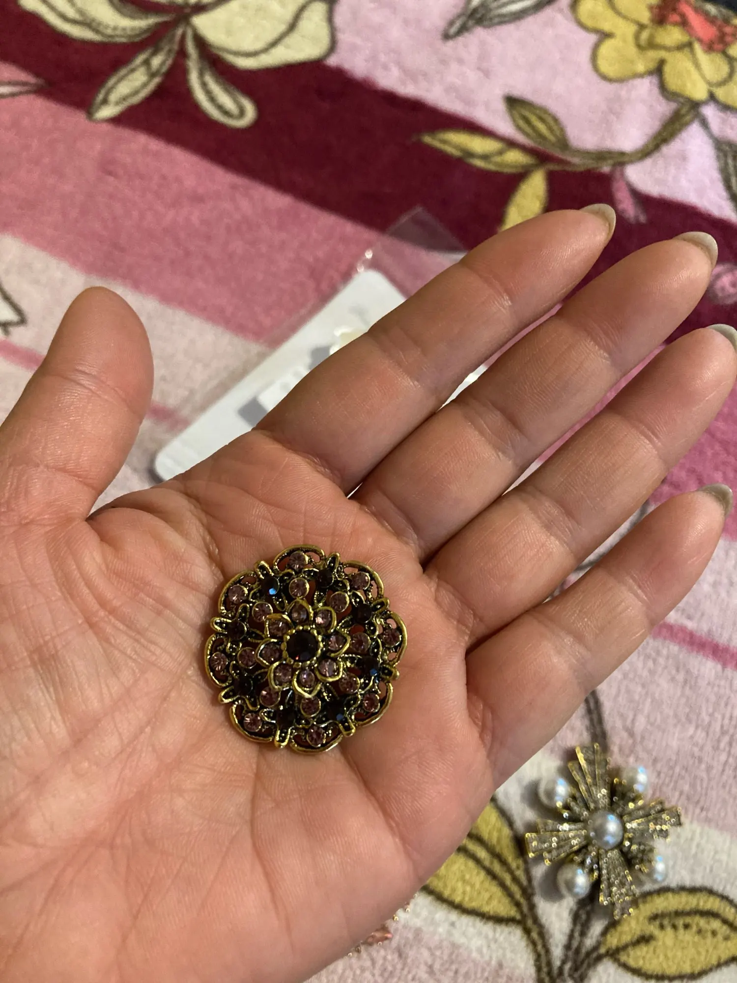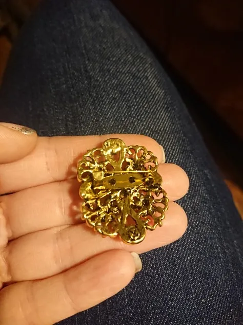 симпатичная брошь. но с размером я немного не угадала, но это моя вина. продавец точно указал ,что брошь 3 сантиметра. заказывала 28 08, пришла посылка 15 10, в Астрахань, продавец уложился в сроки и даже раньше. была бы чуть покрупнее цены бы ей небыло, но кто любит маленькие броши заказывайте смело ,смотрится как старинная красивая брошь