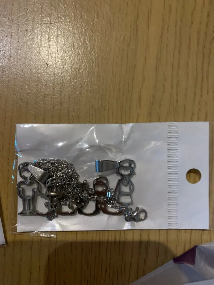 Действительно милое ожерелье. Как семья, я купил эту штуку, представляющую себя и своих двух сыновей. Я был удивлен, увидев, как быстро они доставляют товар. Я бы порекомендовал продавца и производителя. Вся команда совершила отличную работу, представляя девочек, пап, мам или детей. Мне очень нравится. Отличная работа