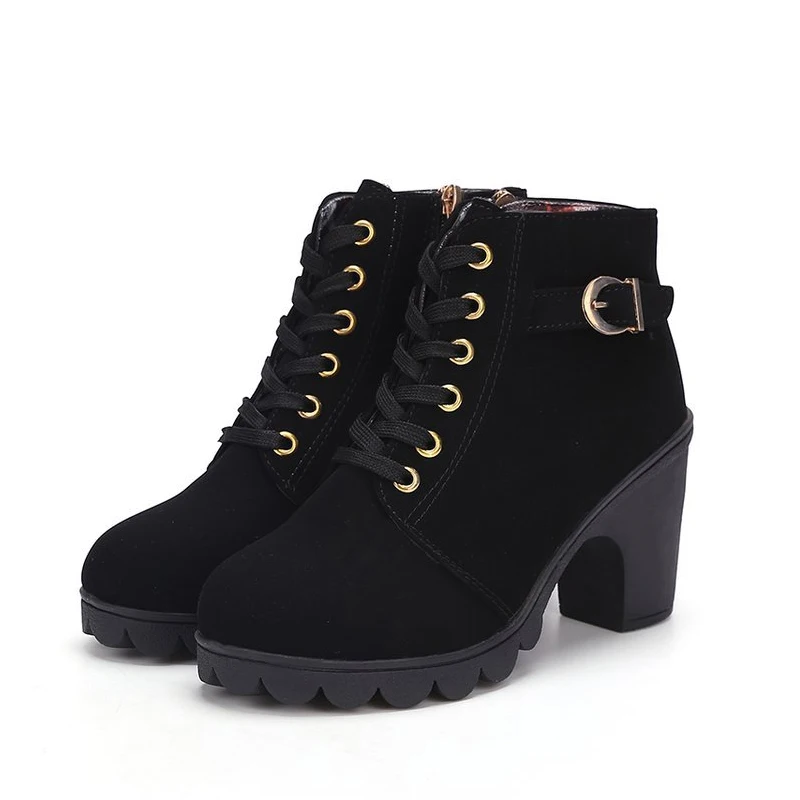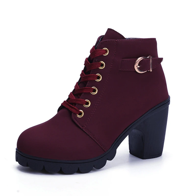 Прямая поставка, демисезонные полуботинки Martin, женские весенние однотонные ботильоны из искусственной кожи на шнуровке, женские ботинки на высоком каблуке ZH36