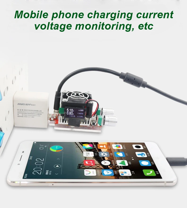 1,35 Вт Мощность непрерывного разряда, напряжение; 1-25 В, ток; 0,1-4.5A 2. Используется 40*40*20 мм медный рулонный вентилятор, низкий уровень шума, сильный ветер, 3,6063 аэрокосмический алюминий 40*40*10 мм алюминиевый радиатор. Сильное охлаждение, чтобы защитить срок службы нагрузки, 4. Поддержка iphone5s / 6s, Android Mirco usb, MINI USB, Тестовые интерфейсы usb Type-c, по размеру тока, вы можете отличить качество кабеля для зарядки данных хорошее или плохое. 4 функции usb-тестера для облегчения тестирования напряжения зарядки и размера тока.