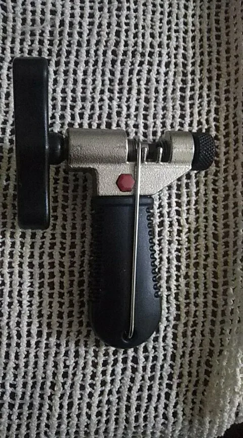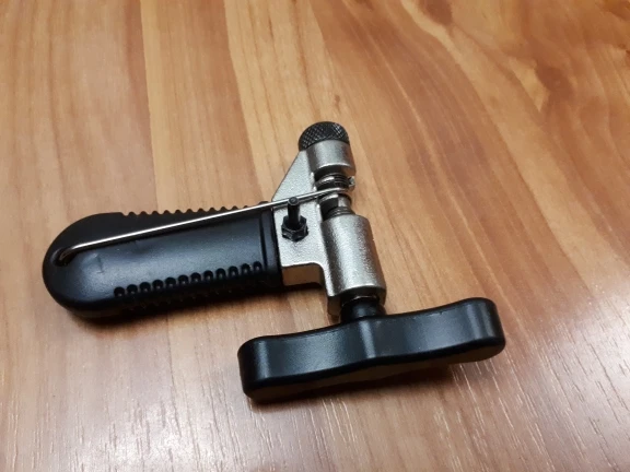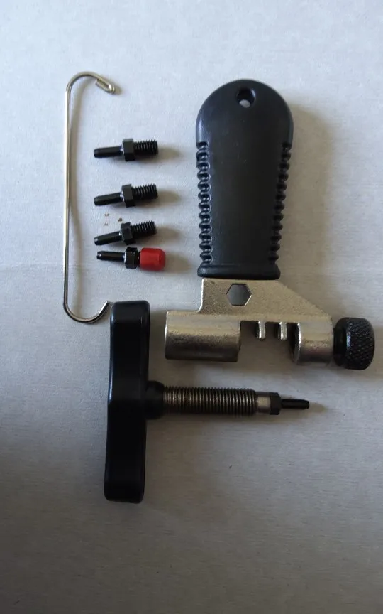 В комплекте скоба для создания удобной петли на цепи при ремонте, запасной шток для выдавливания пинов. Ранее подобным инструментом не пользовался, сравнивать не могу, но удобство работы данного экземпляра понравилось. Цепь заменена.