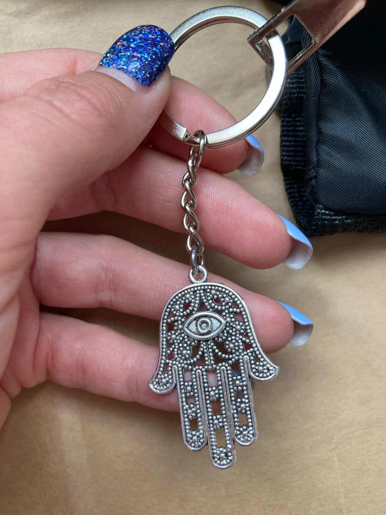 Модный брелок для ключей 30 мм, брелок для ключей, ювелирное изделие, античный бронзовый серебряный цвет, Хамса, защитный амулет в виде ладони глаз смерти, рука Фатимы, подвеска 36x25 мм