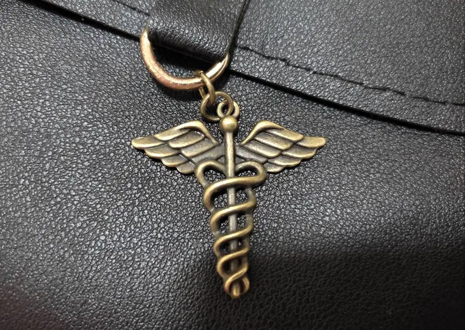 Модное кольцо для ключей, металлический брелок для ключей, ювелирные изделия, античная бронза, серебро, Кадуцей, Медицинский символ Md 40x40 мм, кулон