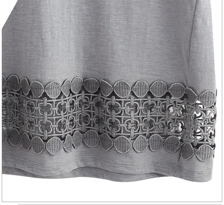 Новинка 2019, Повседневная Свободная футболка с круглым вырезом, кружевной вышивкой крючком, с вырезами, блузы большого размера