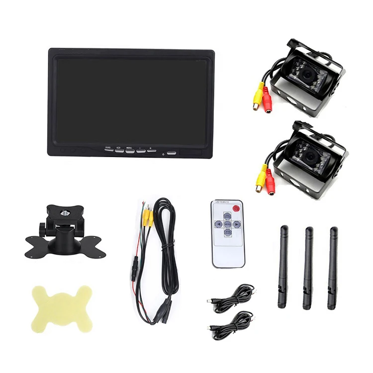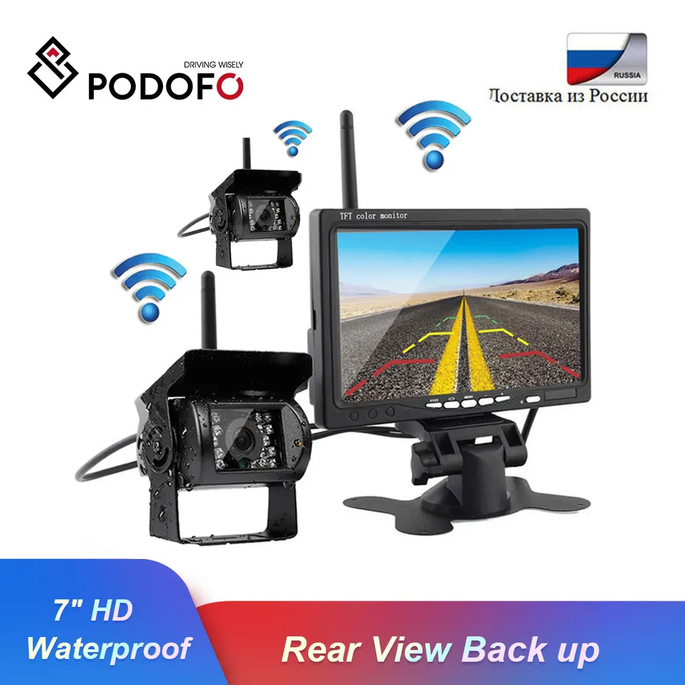 Podofo встроенный беспроводной двойной ИК ночного видения Водонепроницаемый заднего вида резервная камера система + 7 "HD монитор для RV грузовик прицеп автобус