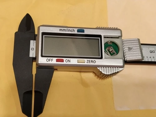 Очень хороший штангельциркуль по отличной цене. Весь из пластика, так что смело можно мерить размеры аккумуляторов, сечение проводов и др. Дисплей очень четкий, измерения точные, можно мерить в миллиметрах и в дюймах. Питается от одной 1,5В батарейки. Минус один-нет чехла или пластикого кейса. Максимально большое измерение равно 15,5 см. Продавца рекомендую.