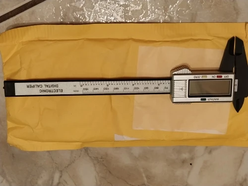 Давно хотел такой "инструмент",но все как-то не решался.Я понимаю, покупать надо металлический,нормальный,но мне для домашних,нечастых измерений,думаю сойдет.Купил с купоном Али на 2 доллара,подыскал магазин с самой хорошой ценой на тот момент,вышло 1.49,еще кешбеком несколько центов вернулось.Попросил продавца ОЧЕНЬ хорошо упаковать,а он положил в жёлтый пакет и в путь.Чудом все приехало целым,я честно удивился,в последнее время,почти все посылки в смятку.Батарейки lr 44 в комплекте нет,вставил,работает.Когда он выключен,отодвигаеш, включается сам,выключаю кнопкой.Переключение дюймы/сантиметры,обнуление работает без проблем.Для проверки взял набор дешовых сверл:10-9.9/9.8,и так по всем размерам,нехватка этого 0.1 мм.Но вот взял хороший,немецкий, ключ шестигранник 6 мм,замеряет точно 6.0 мм.В общем,как и писал ранее,инструмент для домашнего пользования,с более менее точными показаниями.