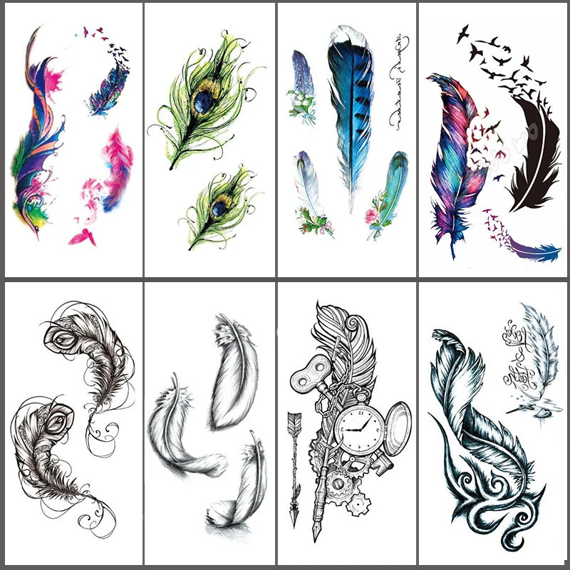 Сексуальный боди-арт Красота Макияж ворона перо водостойкие временные татуировки наклейки