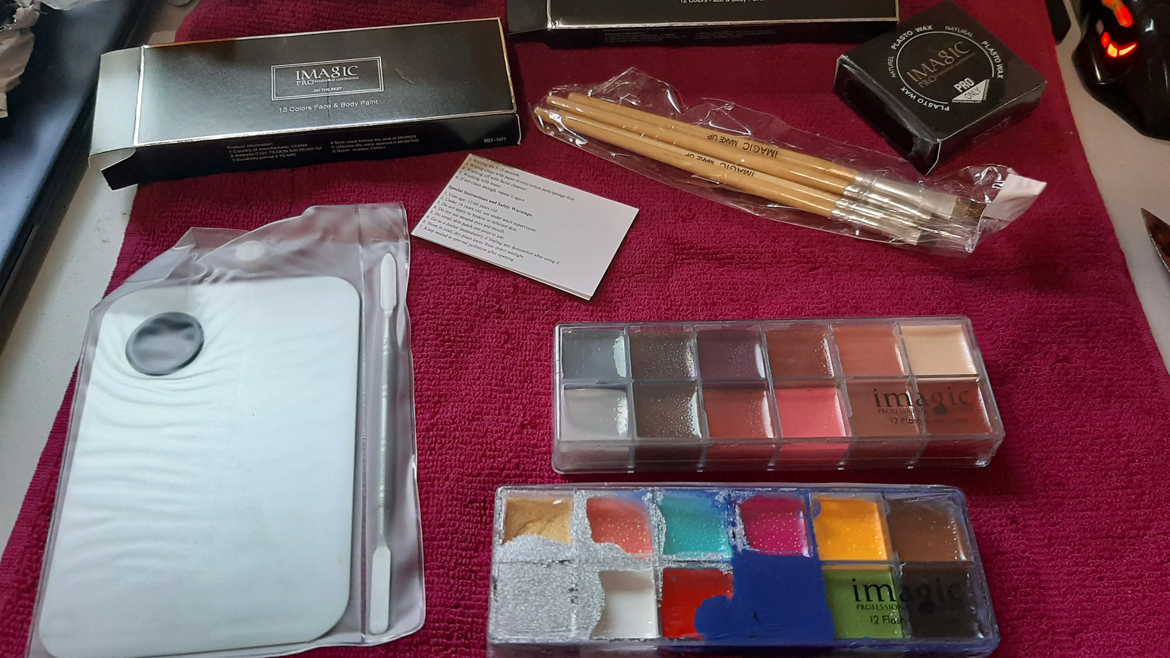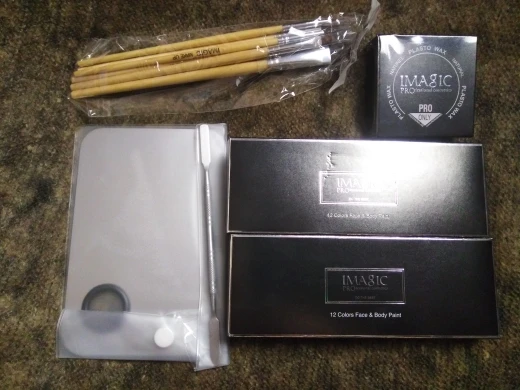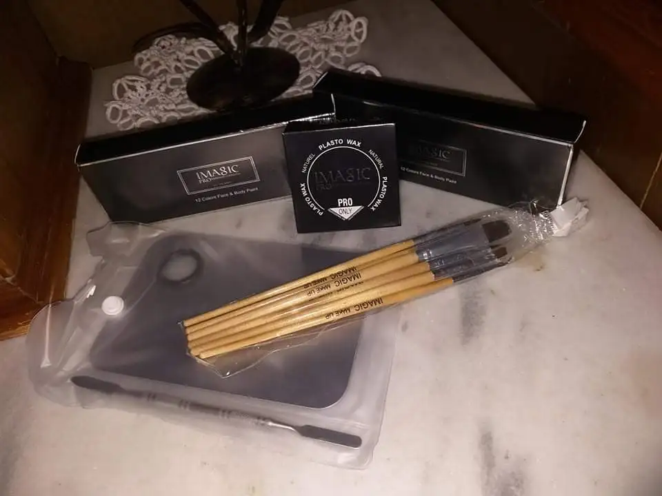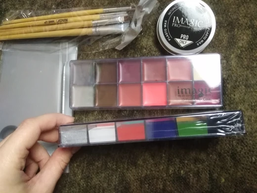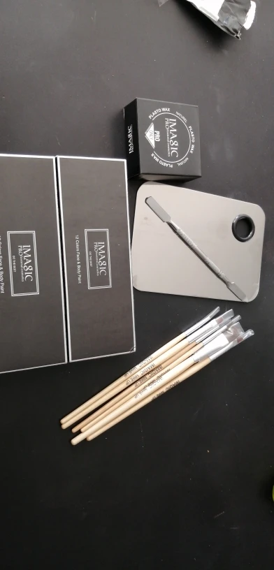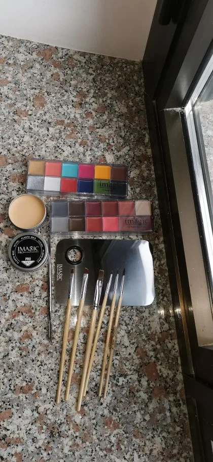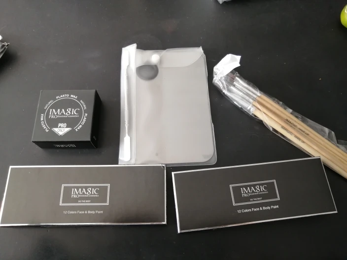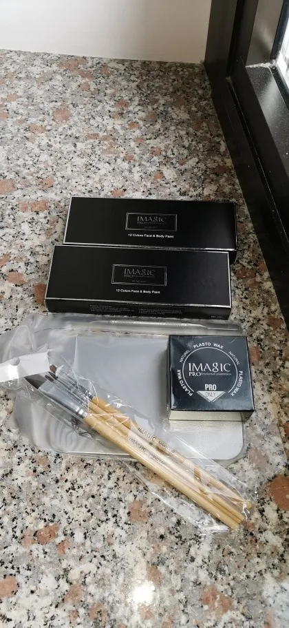 Шикарнейший набор. Очень желанна была эта посылка и когда пришла на почту, то радости не было предела. Упаковано всё наилучшим образом, на фото видно. Всё приехало целым, в полной комплектации. Цвета хорошо пигментированы, кисти не лезут никуда, не остаётся ворс на краске или лице. Палитра для смешивания красок и оттенков очень удобная, отшлифована до состояния зеркала. Красками уже пользовались, они очень хорошо ложатся на кожу и довольно стойкие, в течении 5 часов ничего не поползло. Краски металлик и золото очень классно бликуют и переливаются, эффект свечения дают и цвет соответствующий. Воск поддаётся хорошо, но на мой взгляд немного липковат, но если пальцы немного смочить банально водой, то эффект будет лучше в лепке и создании формы. От товара один восторг, от упаковки тоже, продавец шикарный, можно смело тут покупать и не бояться, что приедет всё побитое и разбитое, со стороны продавца всё запаковано шикарно. Рекомендую к покупке, посылка ехала 2.5-3 недели +/-.