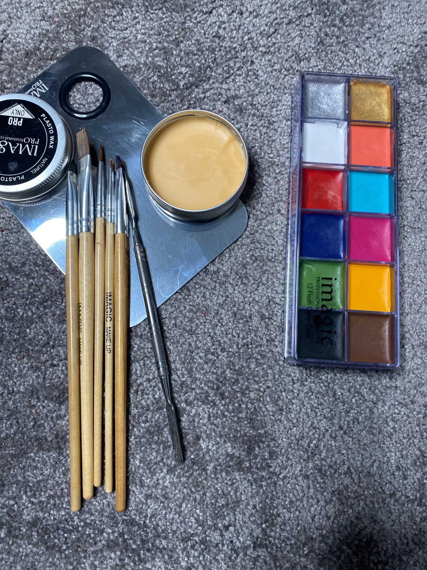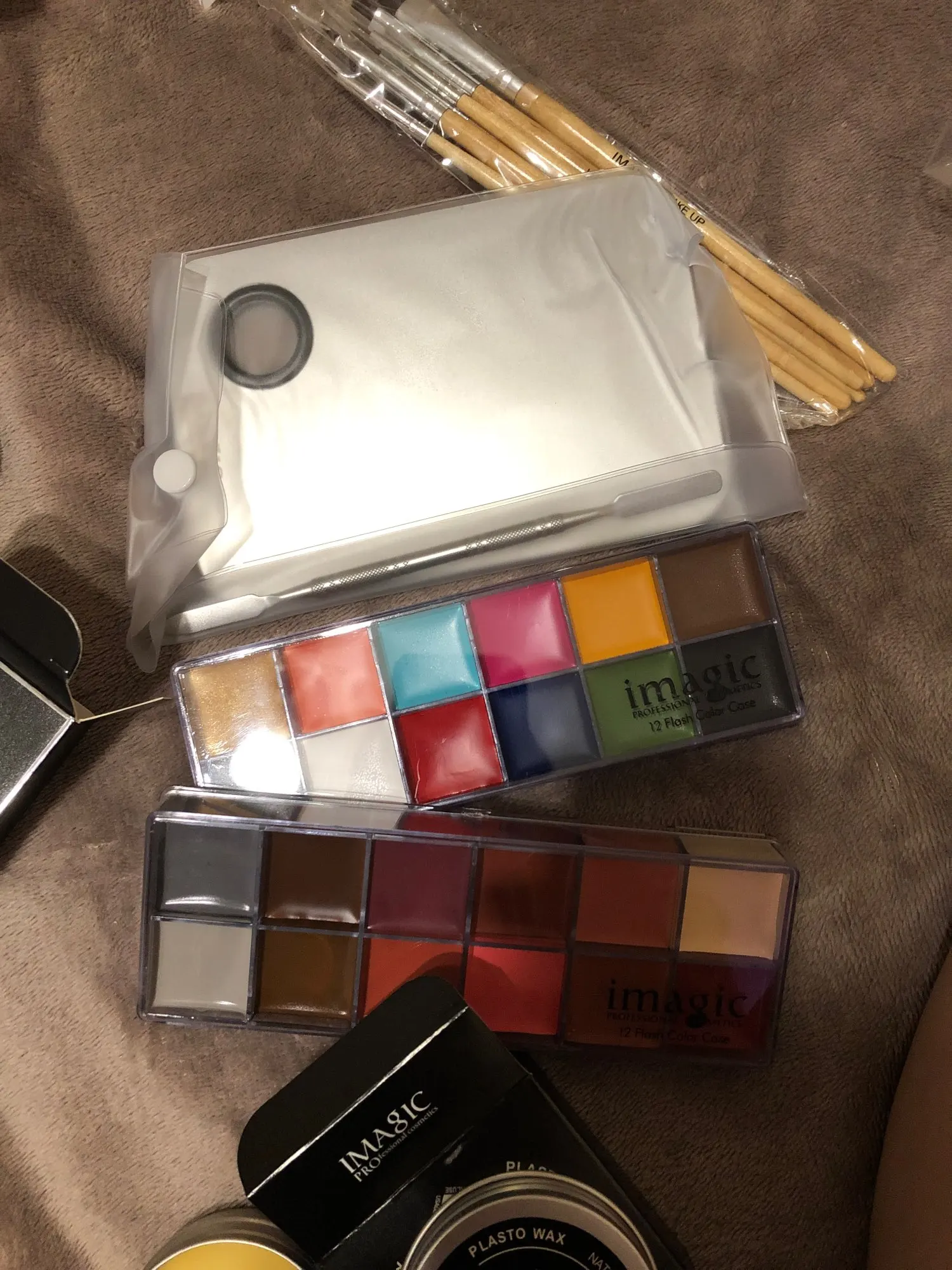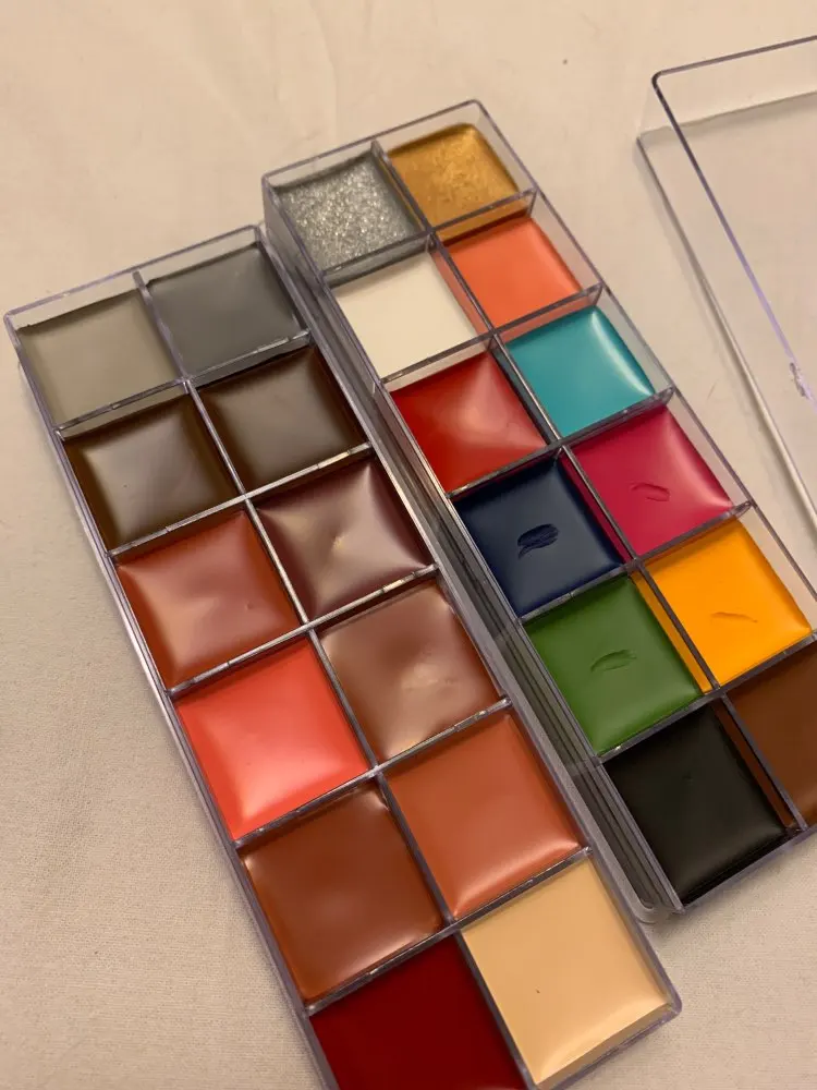 Шикарнейший набор. Очень желанна была эта посылка и когда пришла на почту, то радости не было предела. Упаковано всё наилучшим образом, на фото видно. Всё приехало целым, в полной комплектации. Цвета хорошо пигментированы, кисти не лезут никуда, не остаётся ворс на краске или лице. Палитра для смешивания красок и оттенков очень удобная, отшлифована до состояния зеркала. Красками уже пользовались, они очень хорошо ложатся на кожу и довольно стойкие, в течении 5 часов ничего не поползло. Краски металлик и золото очень классно бликуют и переливаются, эффект свечения дают и цвет соответствующий. Воск поддаётся хорошо, но на мой взгляд немного липковат, но если пальцы немного смочить банально водой, то эффект будет лучше в лепке и создании формы. От товара один восторг, от упаковки тоже, продавец шикарный, можно смело тут покупать и не бояться, что приедет всё побитое и разбитое, со стороны продавца всё запаковано шикарно. Рекомендую к покупке, посылка ехала 2.5-3 недели +/-.