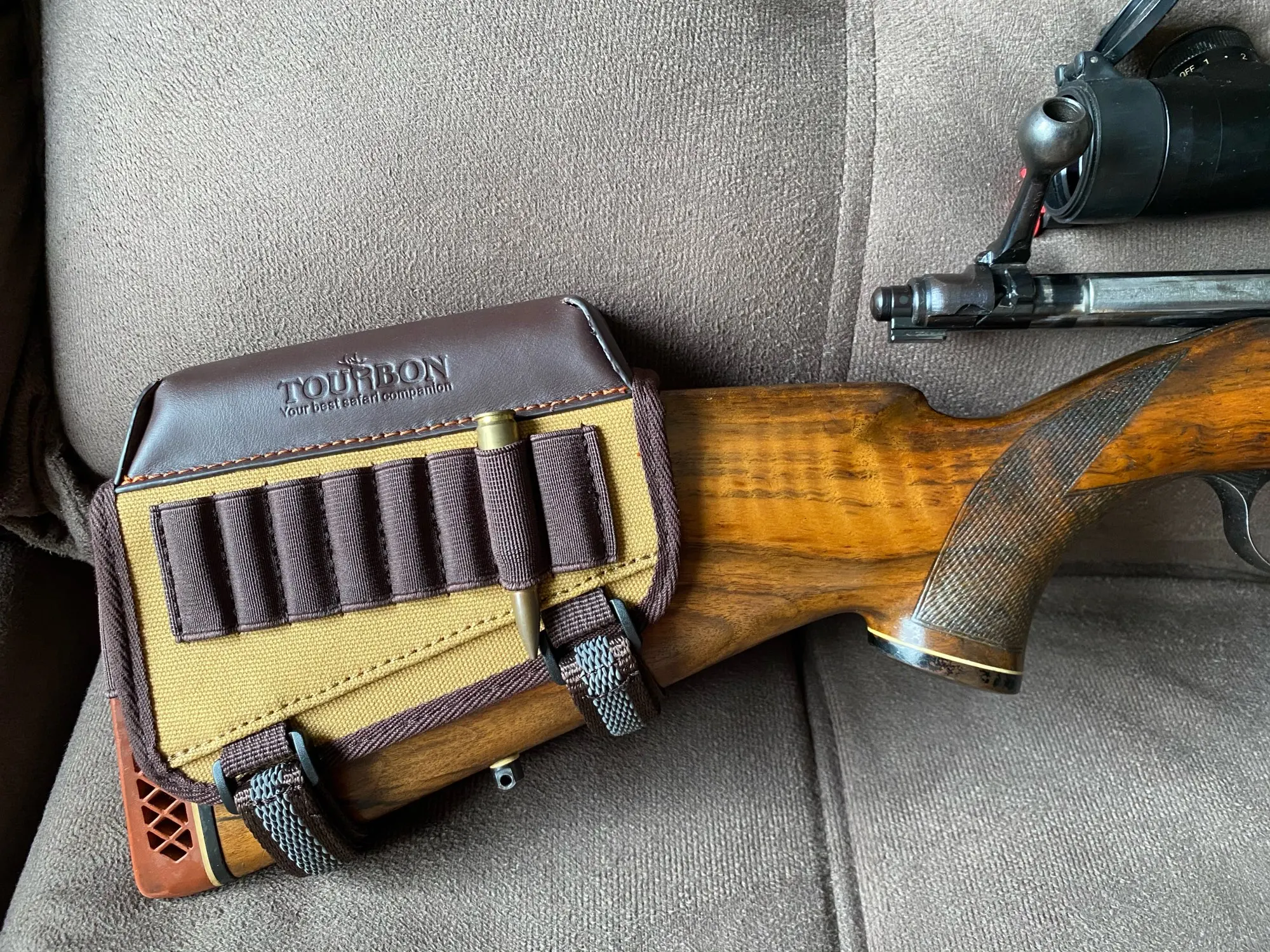 Очень хороший твердый и прочный материал, хорошо прикреплен к английскому кресту моего винчестера с липучками, больше не двигается после установки, отдых играет удобно на 3 сантиметра выше, картриджи хорошо держатся на месте в корпусах без риска их потери, картриджи Винчестер 30/30, Идеальная отделка, нормальная, это тюрбан.