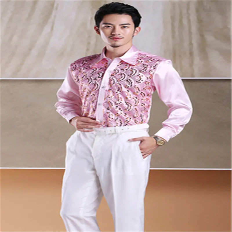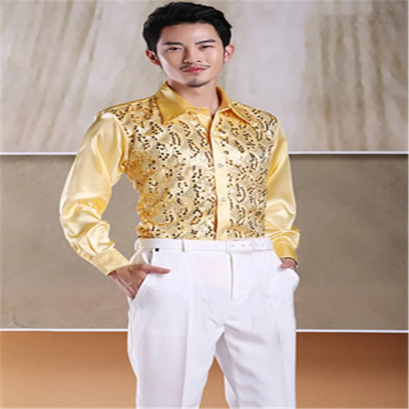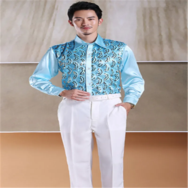 Мужская блестящая рубашка с блестками, рубашка для выступлений и выступлений, Одежда для танцев, торжества, хора