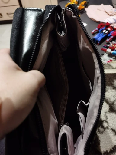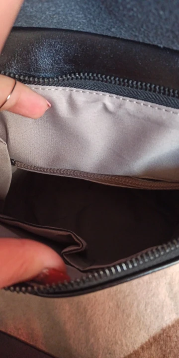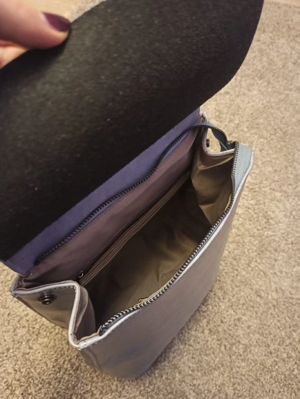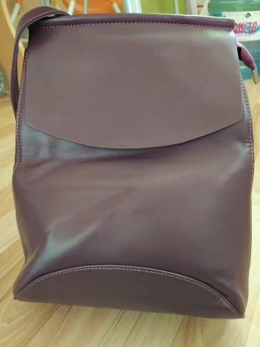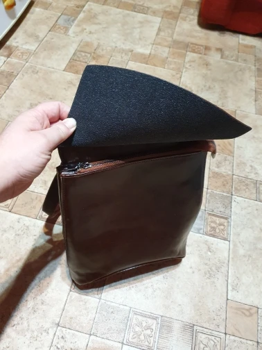 Хорошая сумка-рюкзак! Мягкая, без дефектов. Запаха не было. Понравилось, что под козырьком есть кнопки, растягнув которые, можно увеличить вход во внутренний карман!