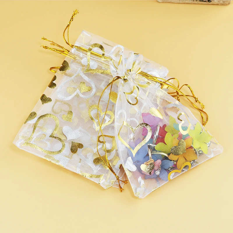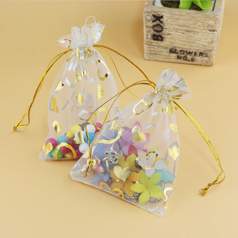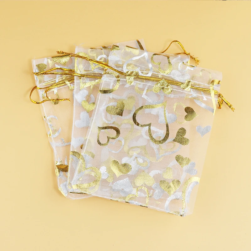 17x23 см (6,69 "x 9,05") 100 шт белые сумки из органзы в форме сердца Сумки для хранения ювелирных изделий сумки из органзы для свадебного подарка Сумки на шнурке