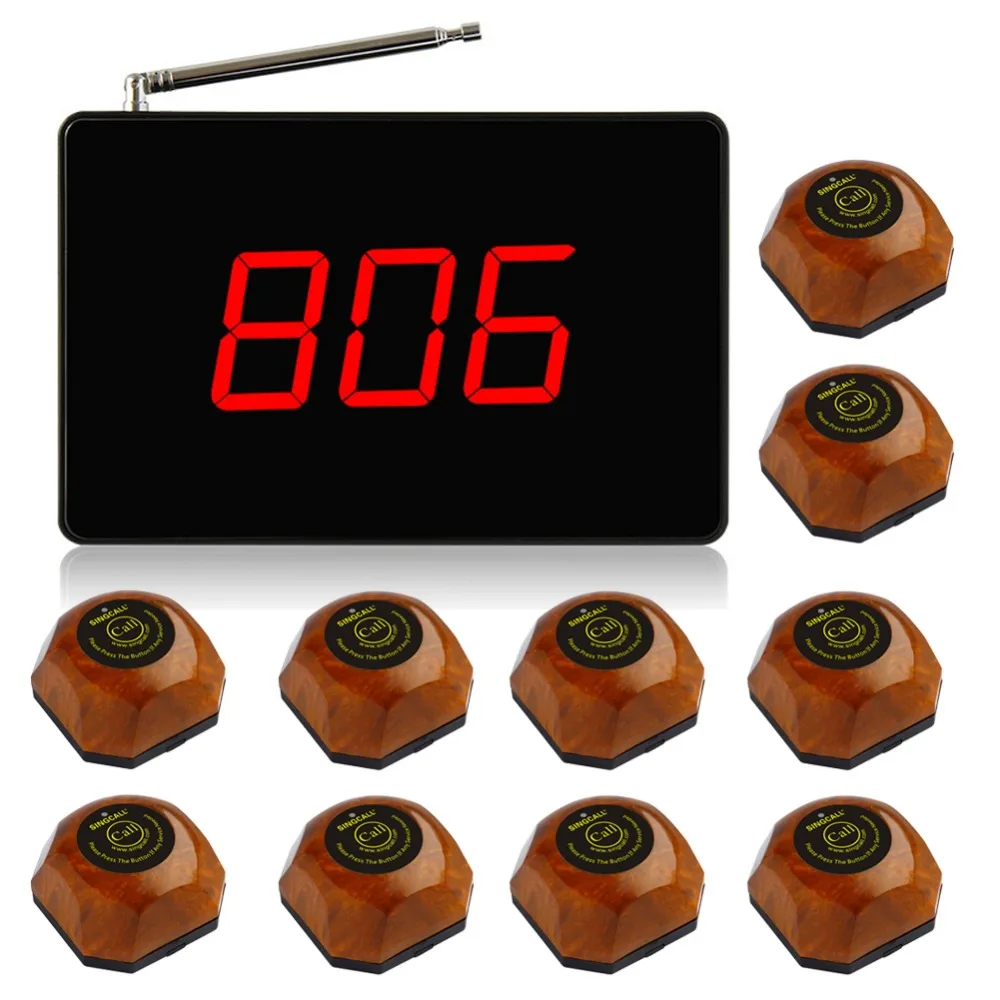 Система звонков SINGCALL, беспроводная Вибрирующая система звонков в ресторане, 1 шт. черная хост-система, 10 деревянных пейджеров с одной кнопкой