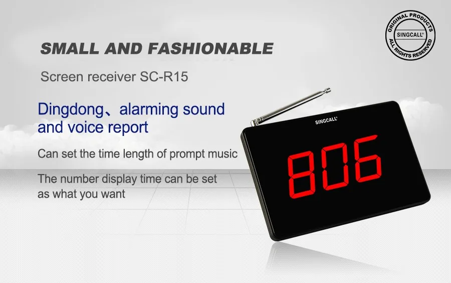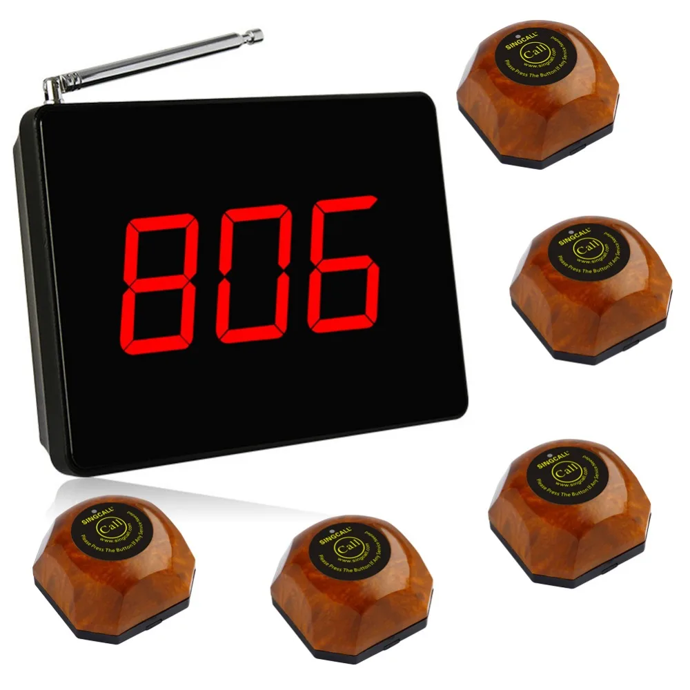 Беспроводная система вызова SINGCALL, для кафе, ресторана, с небольшим экраном, в упаковке 1 дисплей SC-R15 и 5 звонков APE560
